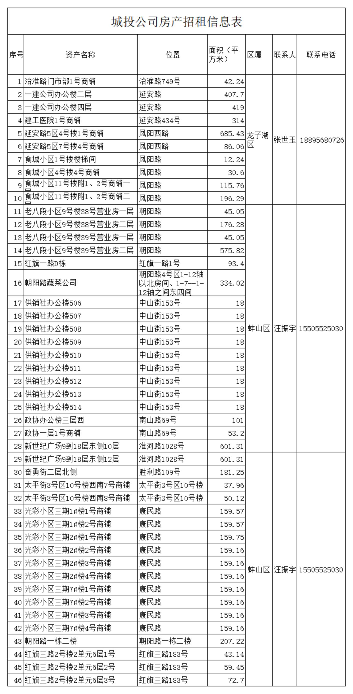 城投公司房產(chǎn)招租信息表
