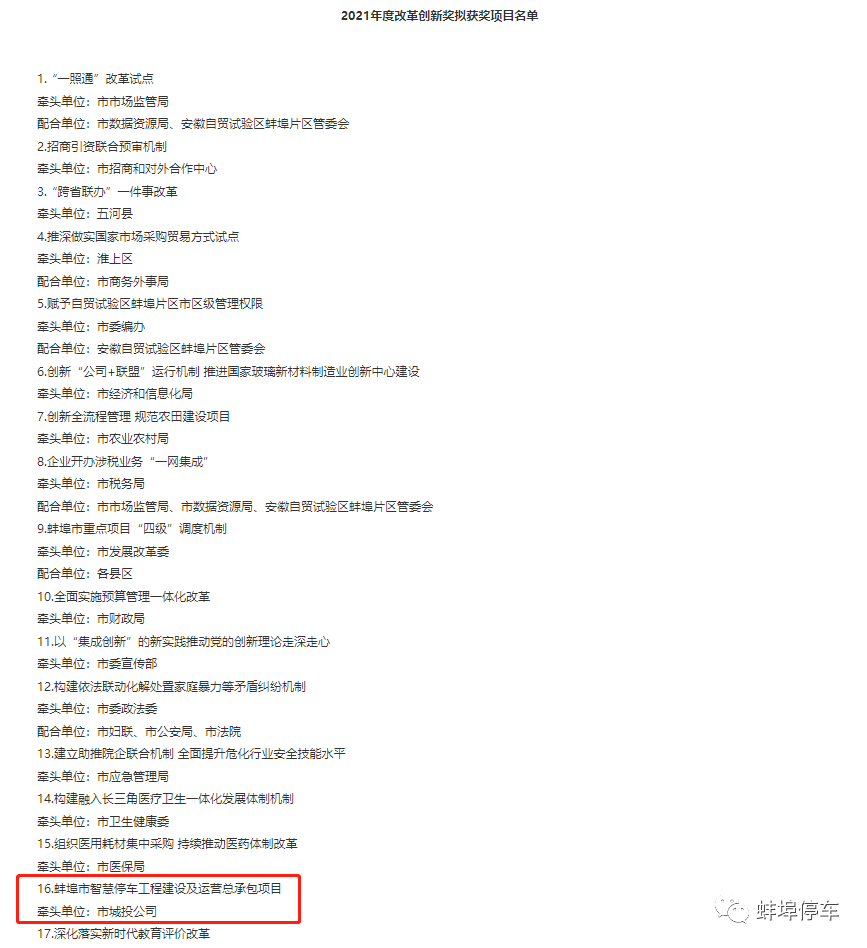 轉(zhuǎn)載:蚌埠市人民政府《2021年度改革創(chuàng)新獎(jiǎng)擬獲獎(jiǎng)項(xiàng)目公示》