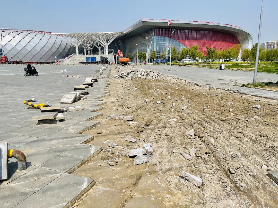 沿著體育中心的外圍入口,板房的框架已經(jīng)初見規(guī)模,地下開挖的管槽已經(jīng)鋪設(shè)好管道。負(fù)責(zé)該項工作的市城投公司副總經(jīng)理楊山鷹介紹,場外有4個臨時構(gòu)筑物,包括入院通道、出院通道、醫(yī)護(hù)人員消殺通道、洗浴間、廁所,總建筑面積達(dá)2000平方米。
