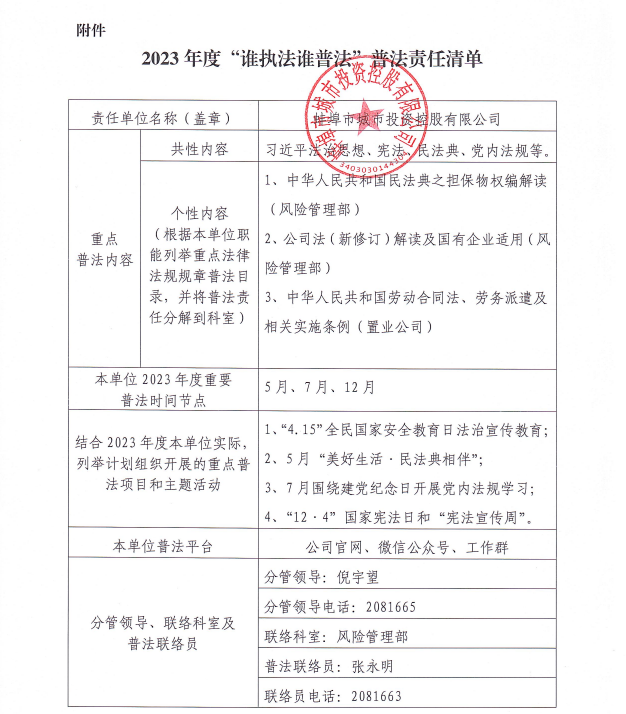 2023年度“誰執(zhí)法誰普法”普法責任清單