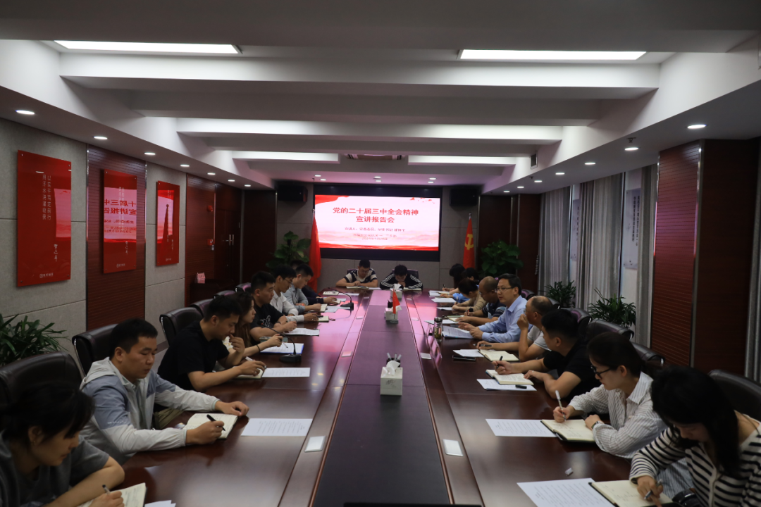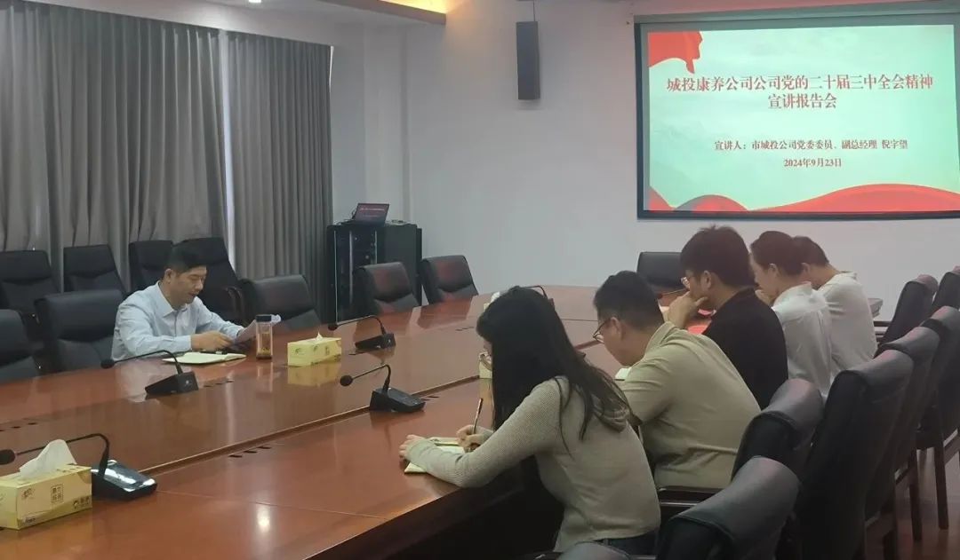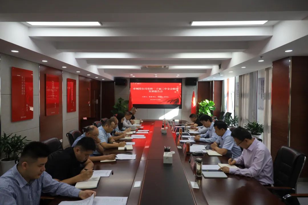 9月23日上午,市城投公司舉行黨的二十屆三中全會精神宣講報告會,黨委書記沈明仕主持會議并作宣講報告,領導班子其他成員及各黨支部書記、各部門負責同志參加會議。