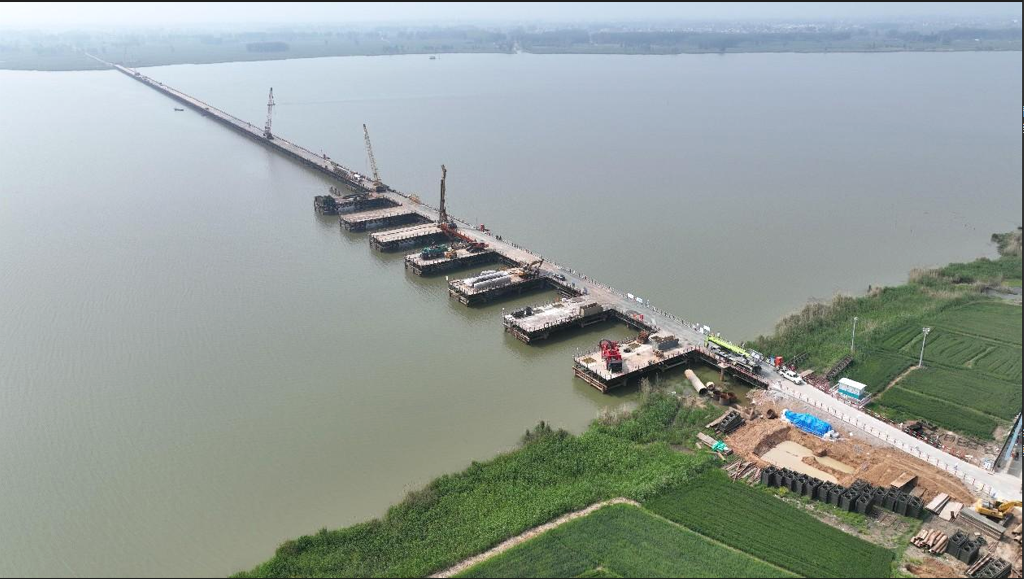 蚌埠城投五蒙高速公路項(xiàng)目TJ-01標(biāo)段沱湖特大橋施工鋼棧橋順利合龍