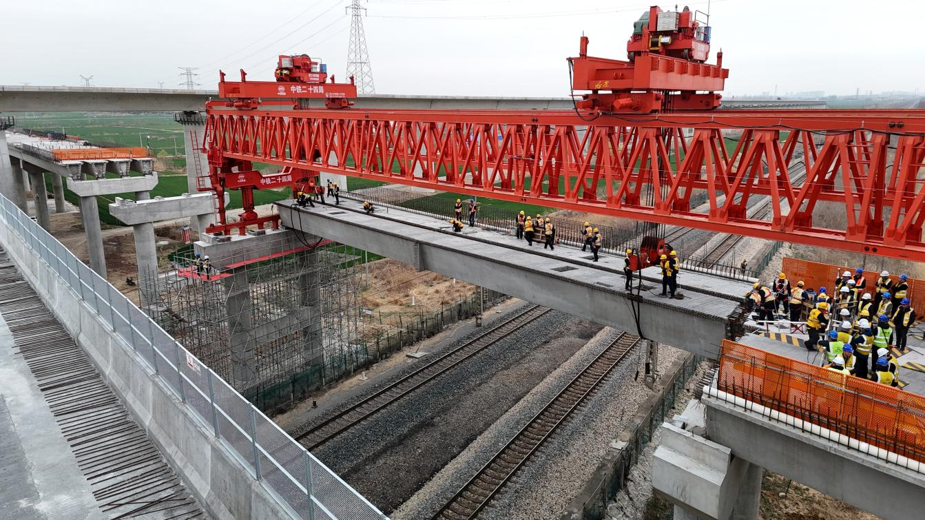 項目位于蚌埠市固鎮(zhèn)縣,全長1.988千米,由中鐵二十四局負責項目實施。京滬鐵路每日通行約140對列車,為確保鐵路運營不受干擾,單日封鎖施工時間有限,需要在100分鐘內(nèi)完成兩片高2米、長40米、重170噸的箱梁架設任務,施工難度高、安全風險大。